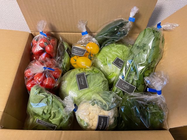 80サイズのダンボールに野菜がぎっしり詰まってました。