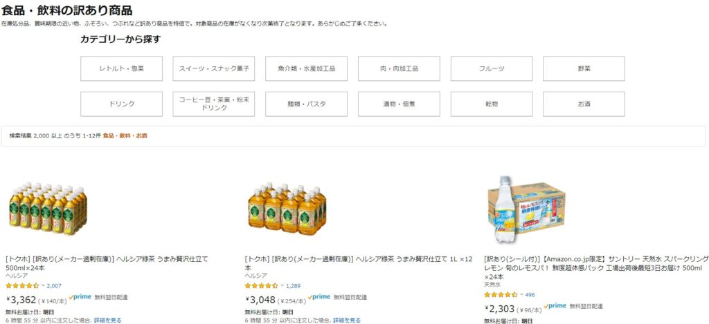 アマゾンで「訳アリ」と検索すると訳アリ商品が出てくる。